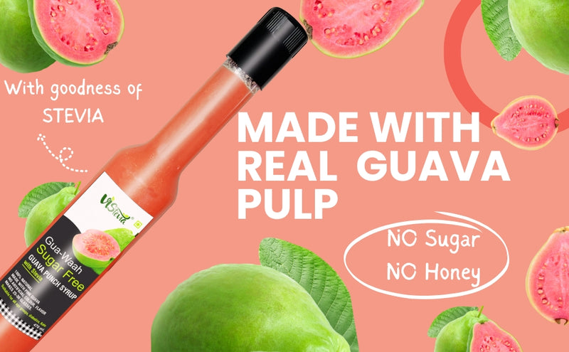 VIStevia Gua-waah - Sugar Free Guava Syrup 470ml (make 30-35 glasses) | 100% Natural | Diabetic friendly | Tastes delicious |