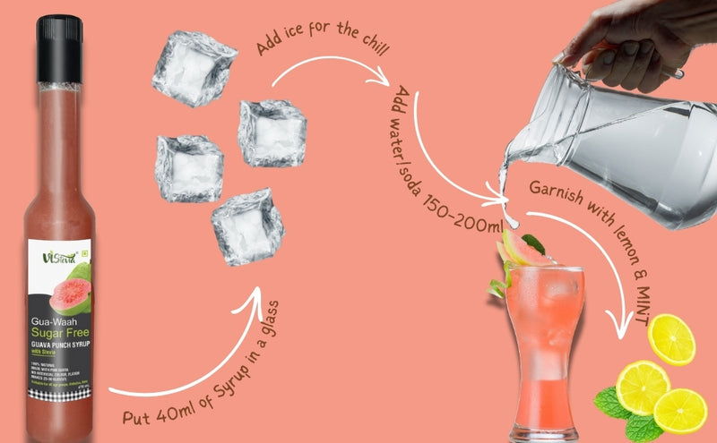 The delicious flavours of this drink will get you hooked! Now you can enjoy a chilled drink during the summers without adding calories to your body. It’s a great refreshment during workout. Better to cool down with a glass of natural guava drink instead of tea/coffee at work Although sugarfree - this guava drink tastes better than the regular drinks, its naturally yummy!