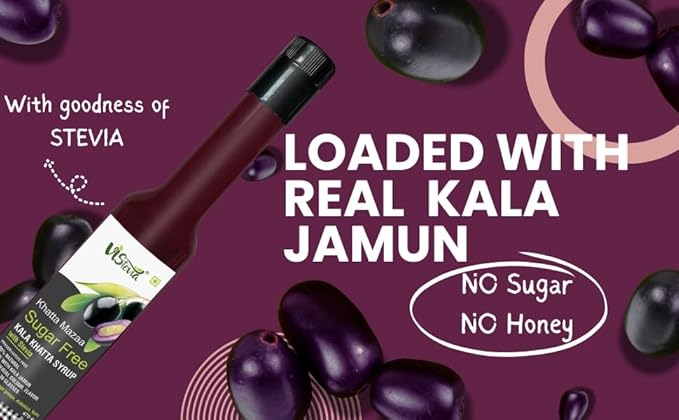 Our Kala Khatta syrup is made with real kala jamun, and sweetened with stevia and erythritol. No artificial colour, flavour or sweeteners have been used to enhance the taste of this product. We have used cumin and black salt to enhance the taste of kala jamun. NO PRESERVATIVES