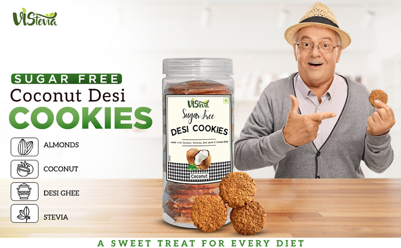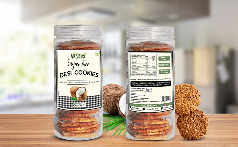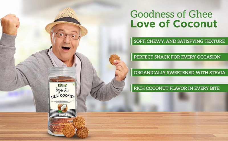 Vistevia Sugar Free Coconut Desi Cookies, Diabetic Freindly - Made With Coconut, Almonds, Desi Ghee And Stevia - Delicious To Taste, Pack Of 1 (250G)