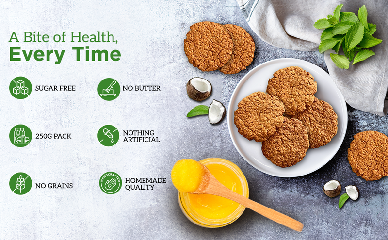 Packed with grated coconut and devoid of grains, butter, baking powders, flavors, eggs, or MSG, they cater to various dietary needs, including diabetic, and gluten-free diets. Bid farewell to sugar cravings and embrace the irresistible flavor of these desi cookies. Enjoy a delightful treat without compromising on health.