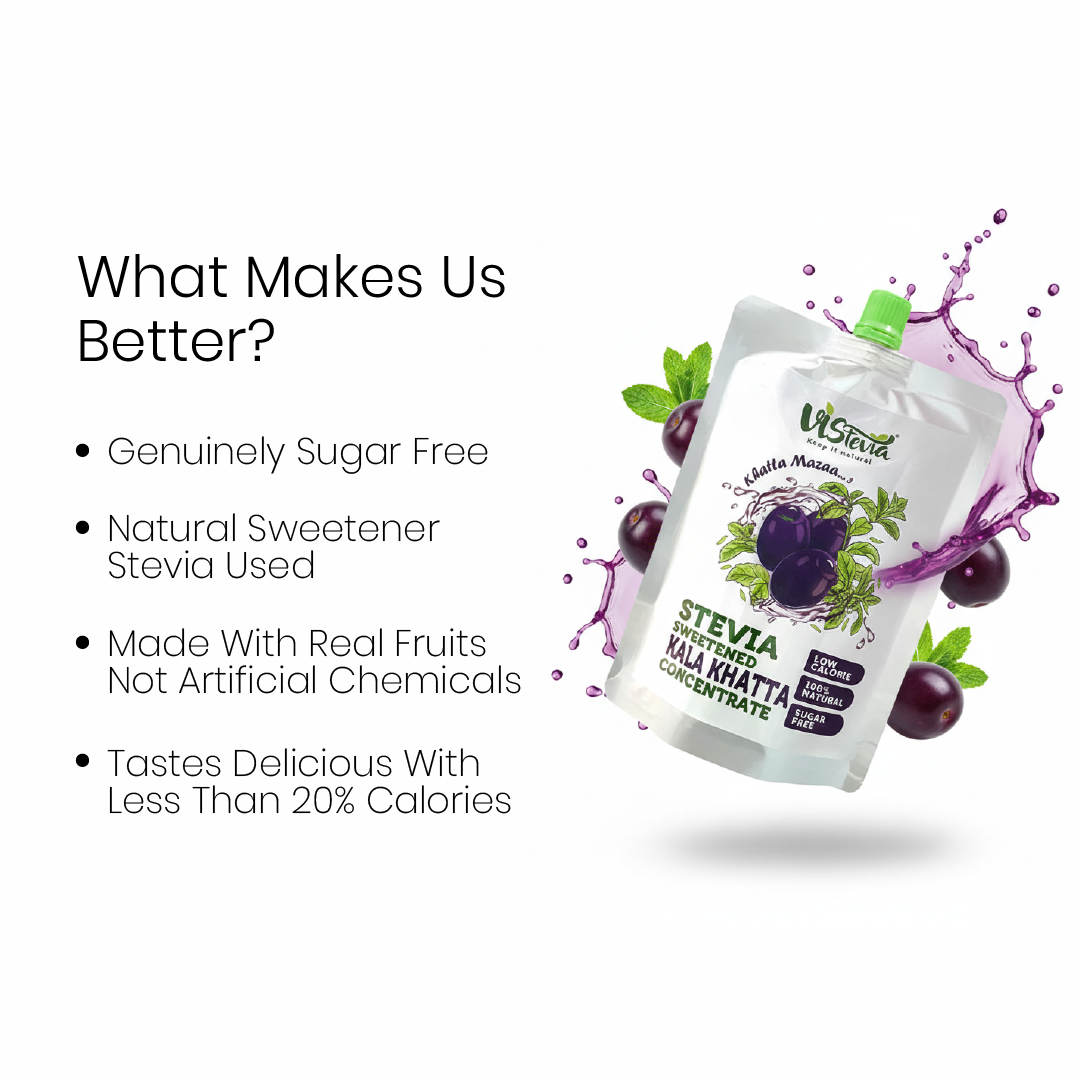 VIStevia Khatta Mazaa – VIStevia Khatta Mazaa Concentrate is a mixture of satisfying taste and low calorie. The usage of Kala Jamun Puree in the concentrate gives you an exquisite taste of Kala Khatta.