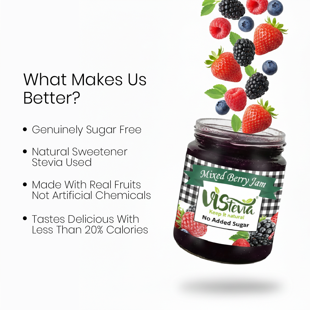 Vistevia Sugar Free Mixed Berry Jam, Diabetic and Keto Friendly - Sweetened Naturally with Stevia, More Than 60% Berries Content - Tastes Delicious - Pack of 1 (220G)
