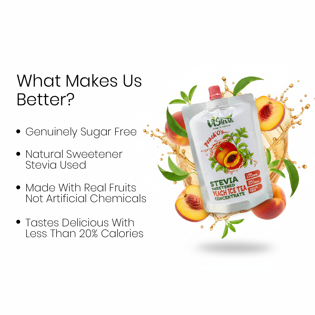 VIStevia Peach’O’s is a low calorie peach ice tea concentrate, with no added sugar. It is a refreshing drink made with only natural ingredients. It is loaded with peaches, full of Antioxidants and rich in many vitamins and minerals. The peachy flavour is paired with the finest Darjeeling black tea to make this low-carb Keto peach Iced tea ‘ blend. And Stevia adds the perfect sweetness to it. Not only is it healthy but it tastes delicious. Try it to believe that sugar free drinks can taste better than sugar filled beverages. A must have for all that are looking to lead a healthy lifestyle.