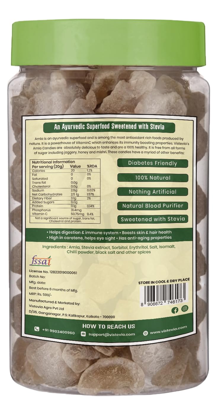 Vistevia Sugar Free Amla Candy Combo Pack - Sweetened and Chatpata Flavours. Pack of 2 (500G each)