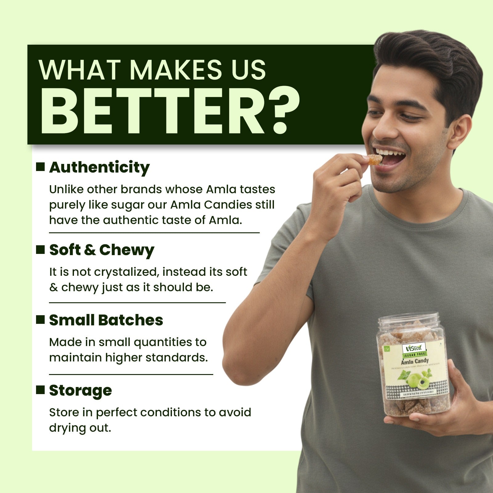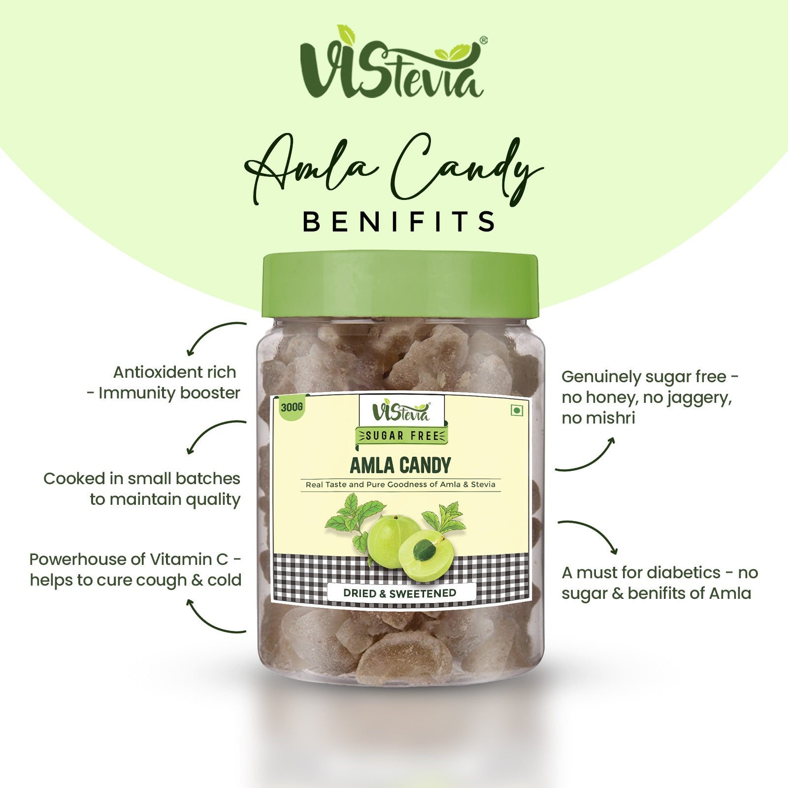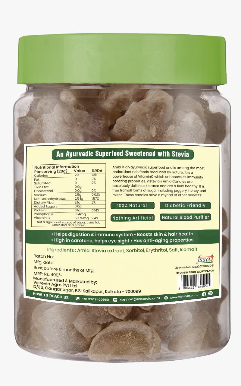Discover VISTEVIA's delightful sugar-free Amla and Real Fruit candies, a perfect fusion of taste and wellness.