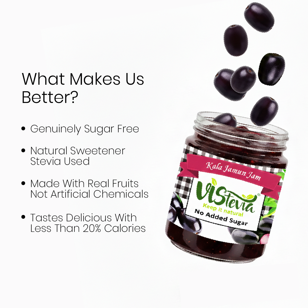 Vistevia Sugar Free Kala Jamun Jam, Diabetic and Keto Friendly - Sweetened Naturally with Stevia, More Than 60% Jamun Content - Tastes Delicious - Pack of 1 (220GM)